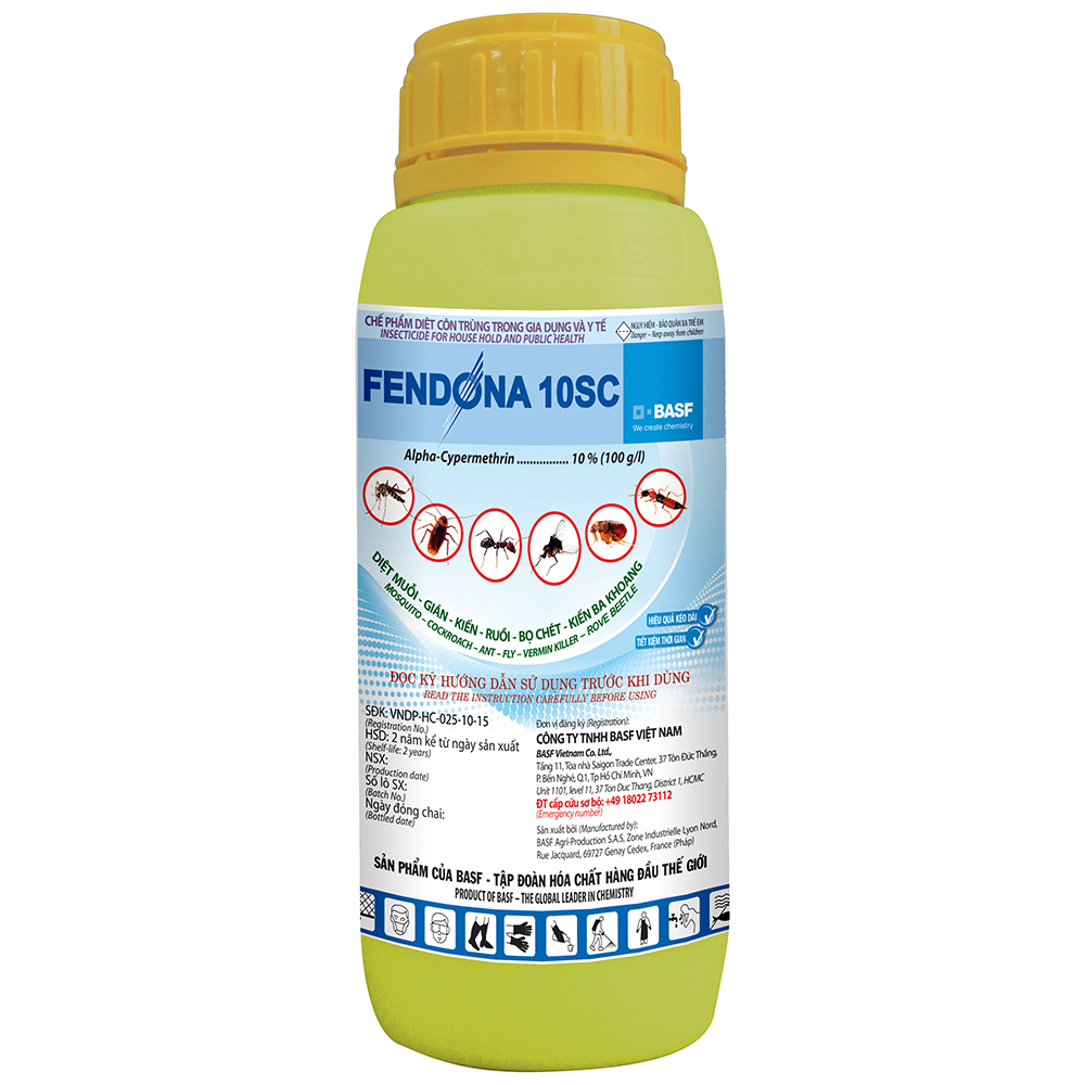 Fendona 10SC là một loại thuốc diệt côn trùng dạng huyền phù đậm đặc, được sản xuất bởi tập đoàn hóa chất hàng đầu thế giới BASF. Sản phẩm này nổi tiếng với khả năng kiểm soát hiệu quả nhiều loại côn trùng gây hại như muỗi, gián, kiến, ruồi, và bọ chét. Fendona 10SC được sử dụng rộng rãi trong các hộ gia đình, khu dân cư, bệnh viện, trường học, nhà hàng, khách sạn và các khu vực công cộng khác.